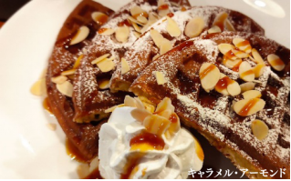 キャラメルと⾹ばしいアーモンドをトッピングしたワッフルです。